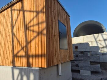 Die Kabine wurde in Giswil durch Fanger Elementtechnik AG vorgefertigt. Transport und Versetzung übernahm Fanger Kran. Die enge Zusammenarbeit zwischen Fertiger, Transporteur und Premoco war von Anfang an zentral für den Erfolg.