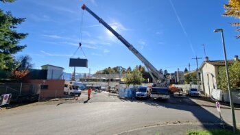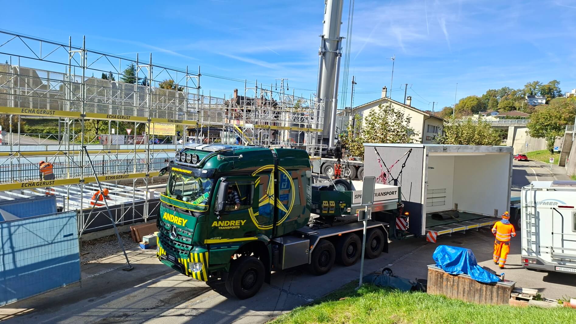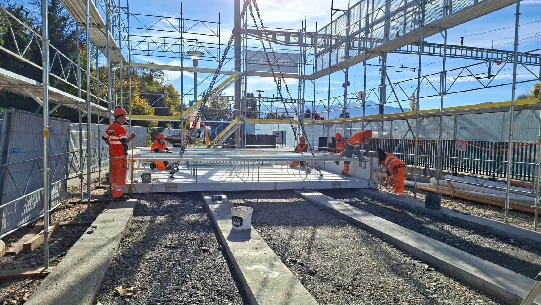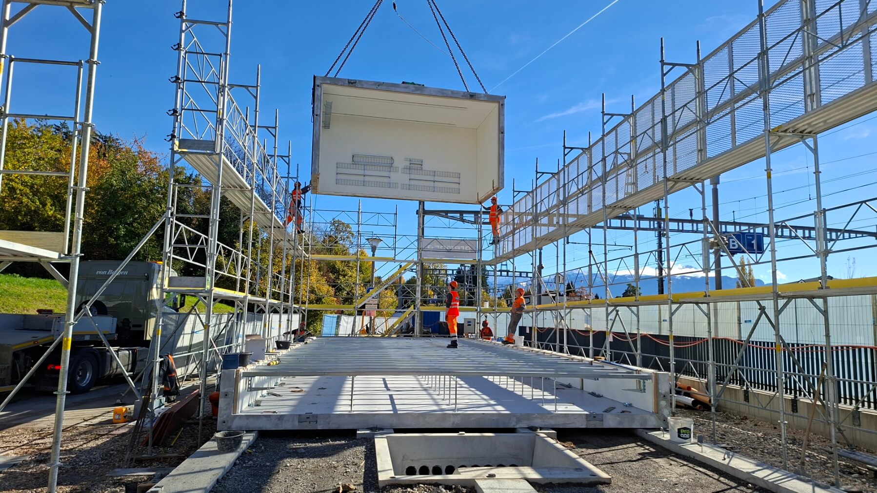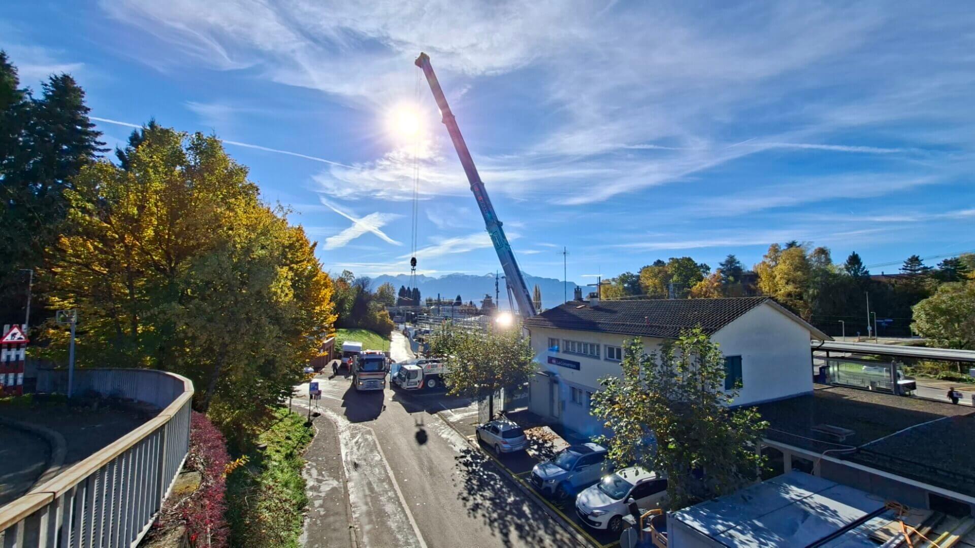 Bei strahlendem Herbstwetter hat Premoco erfolgreich neun BTG-Elemente direkt beim bestehenden Bahnhof La Conversion (Kanton Waadt) montiert. Insgesamt 345 Tonnen modernste Gebäudetechnik wurden präzise und sicher aufgestellt.